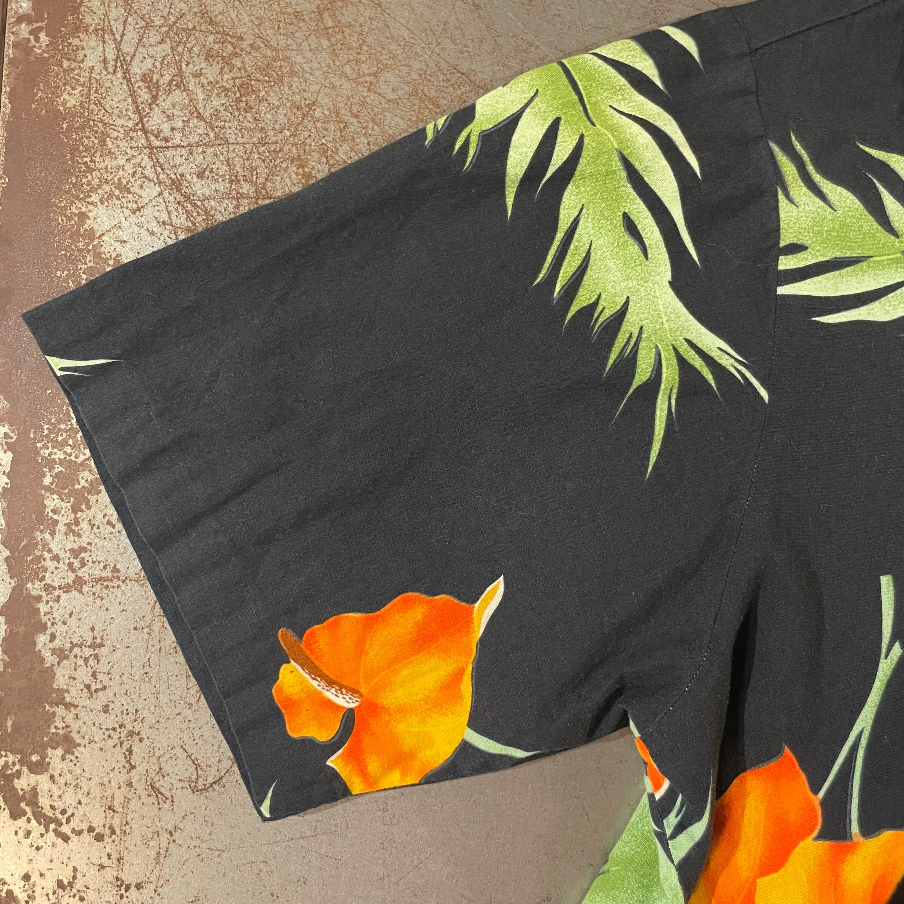 ブラックボディに、鮮やかなオレンジフラワーとグリーンのリーフが映える一枚です。夏の主役シャツとしてはもちろん、デニムやショーツと合わせてラフに着こなすのもおすすめです!是非。