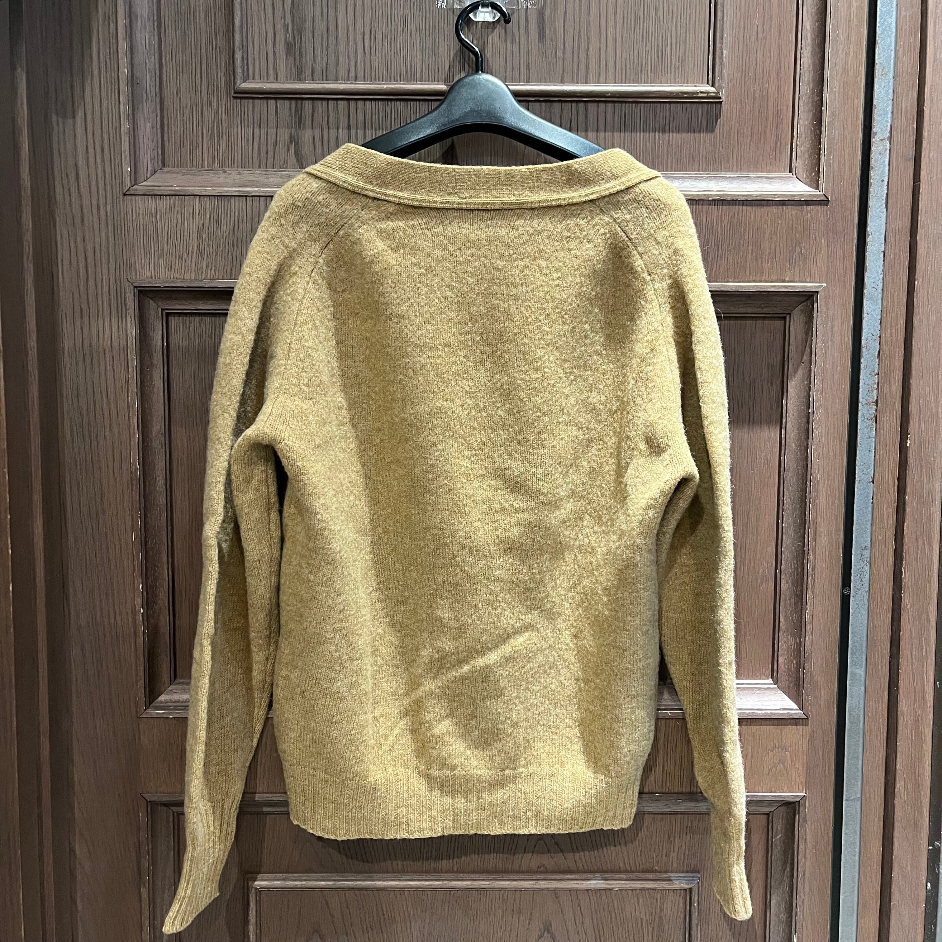程よい厚みとウールニットの質感が良く、落ち着いたキャメルブラウンの色味と丸みのあるウッド調ボタンやフロントポケットなど、ヴィンテージらしい温かみのあるディテールがポイント◎Tシャツの上にさらっと羽織るだけで雰囲気が出る1枚です。