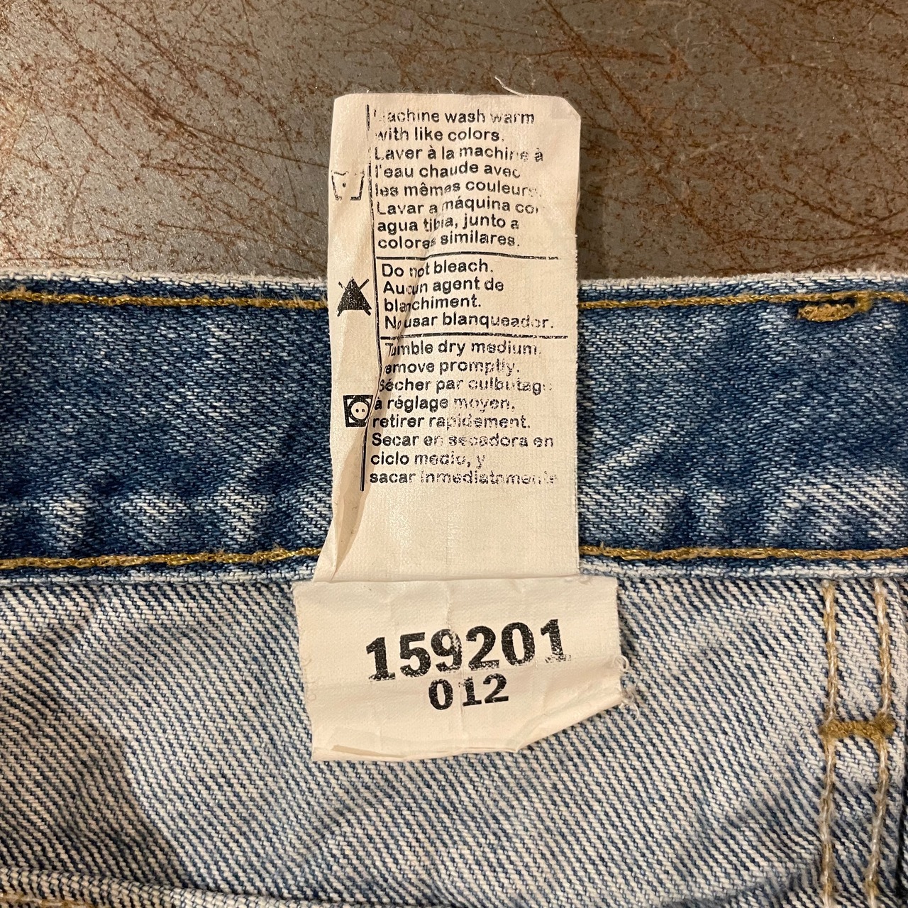 ムラのある色落ちや汚れの跡が、リアルワークらしい雰囲気をしっかりと残した一本。