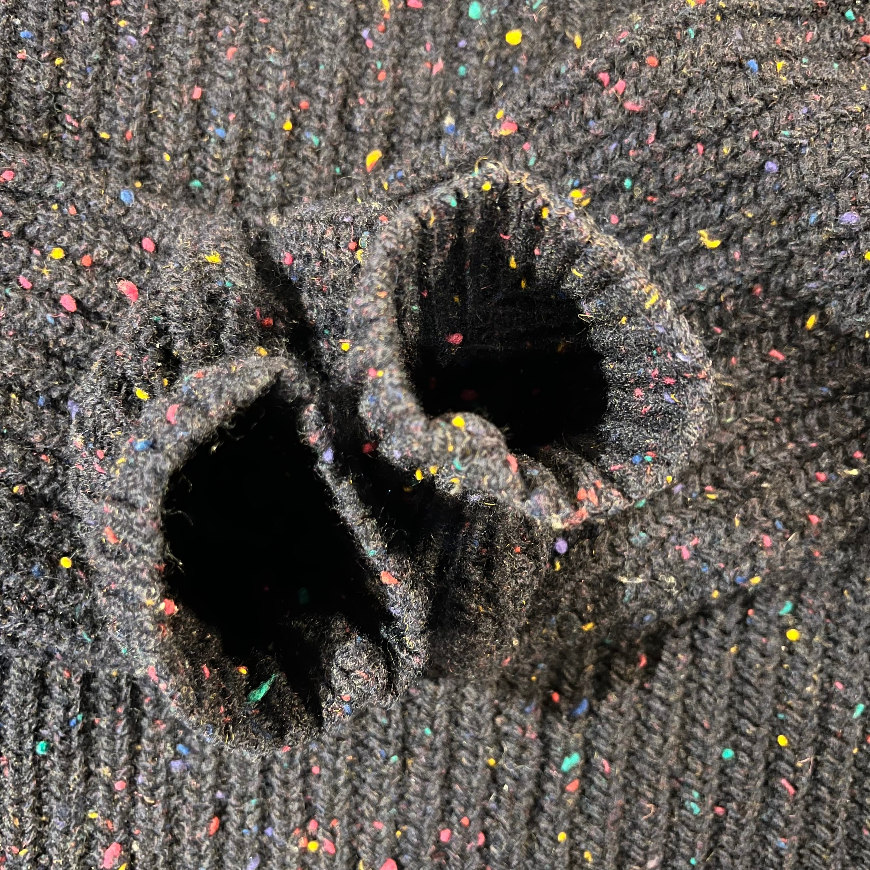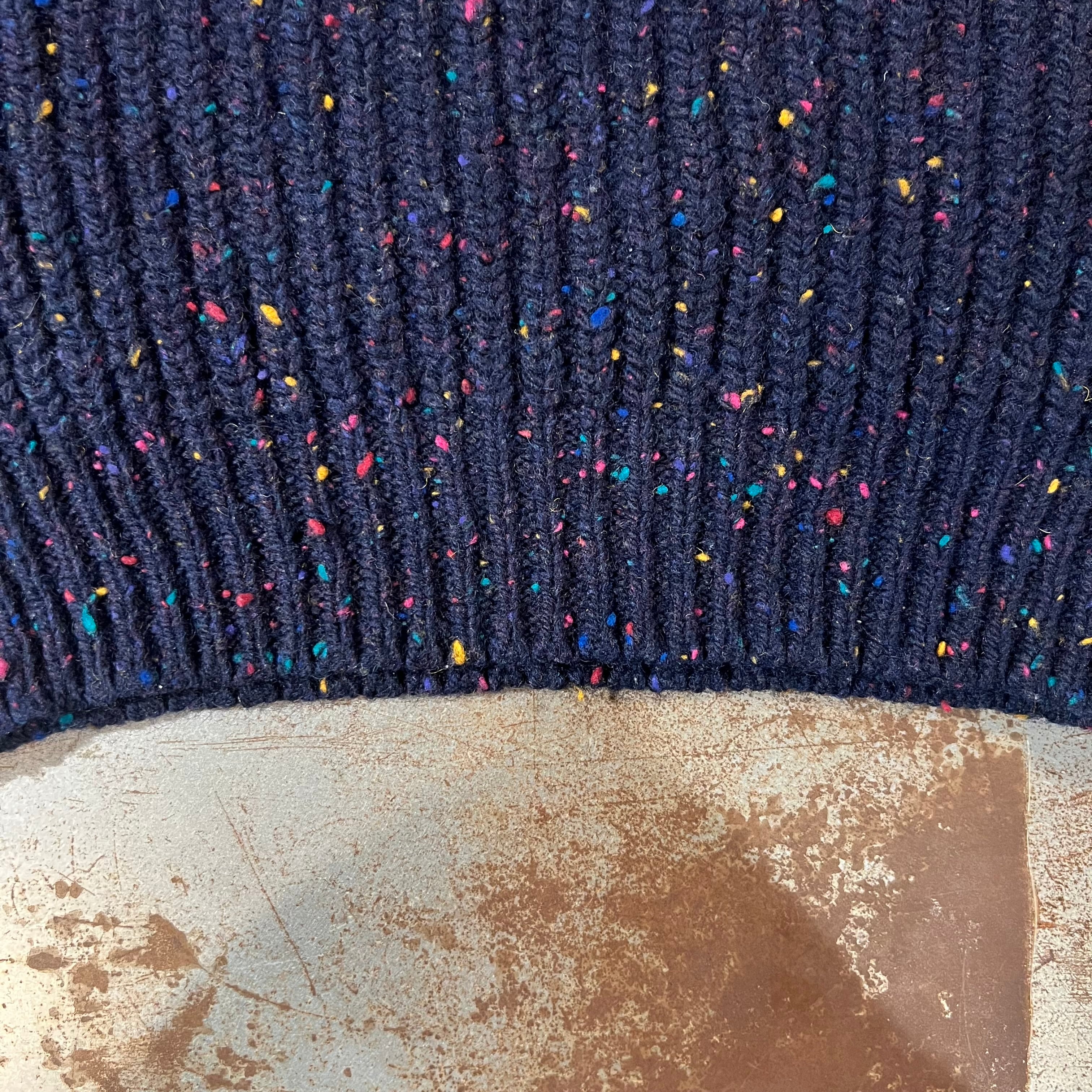 赤青黄紫などいろんな色のネップがきいたニット。