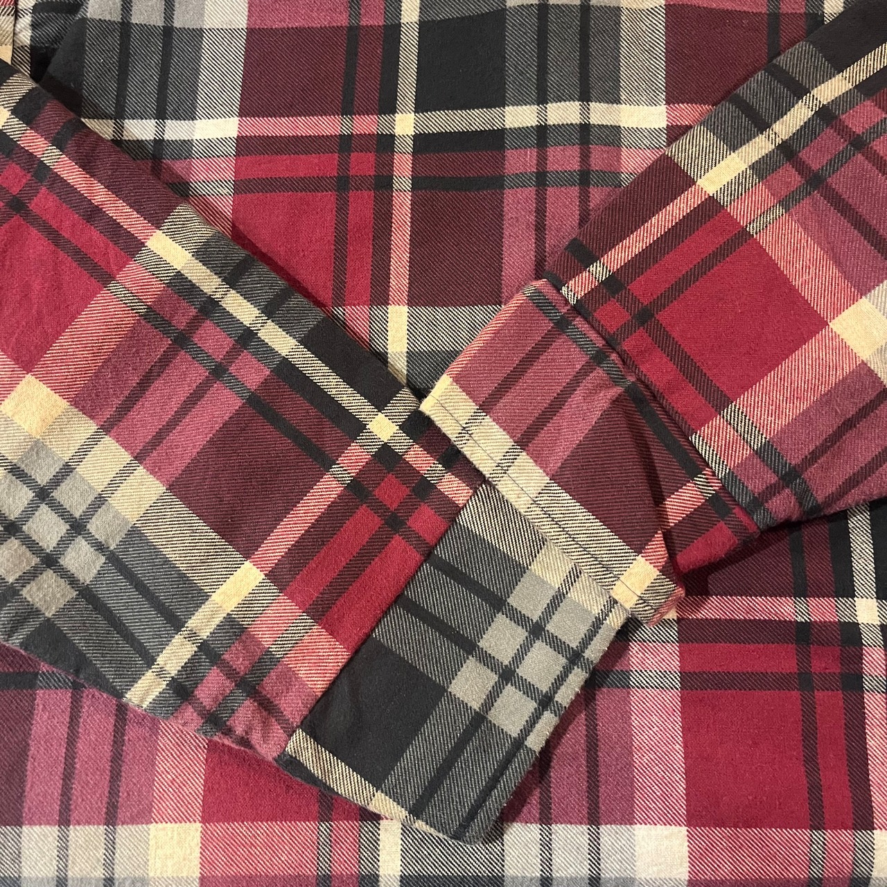 シンプルな赤黒ではなくグレー、ホワイトと細かなカラーリングがグッドな一着。