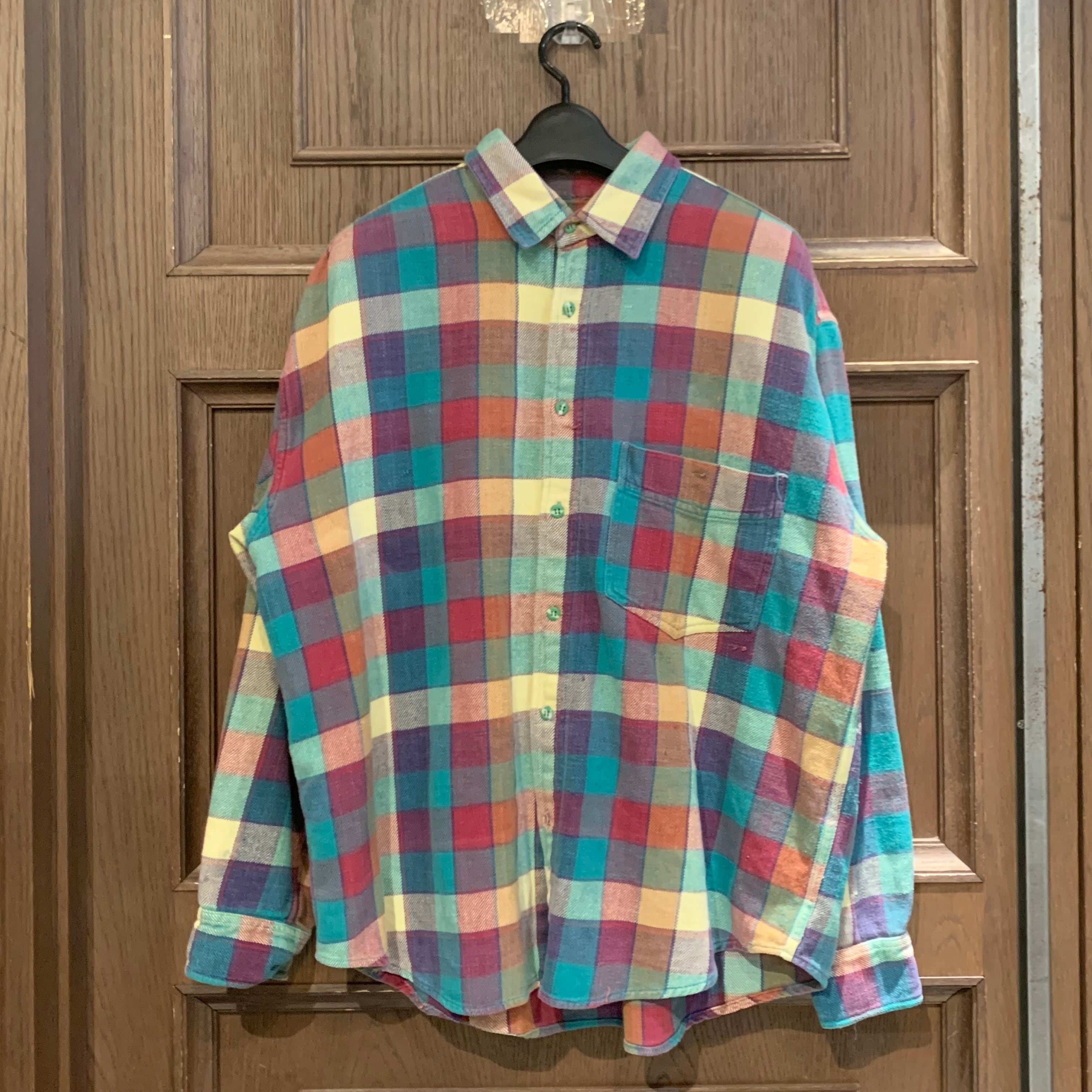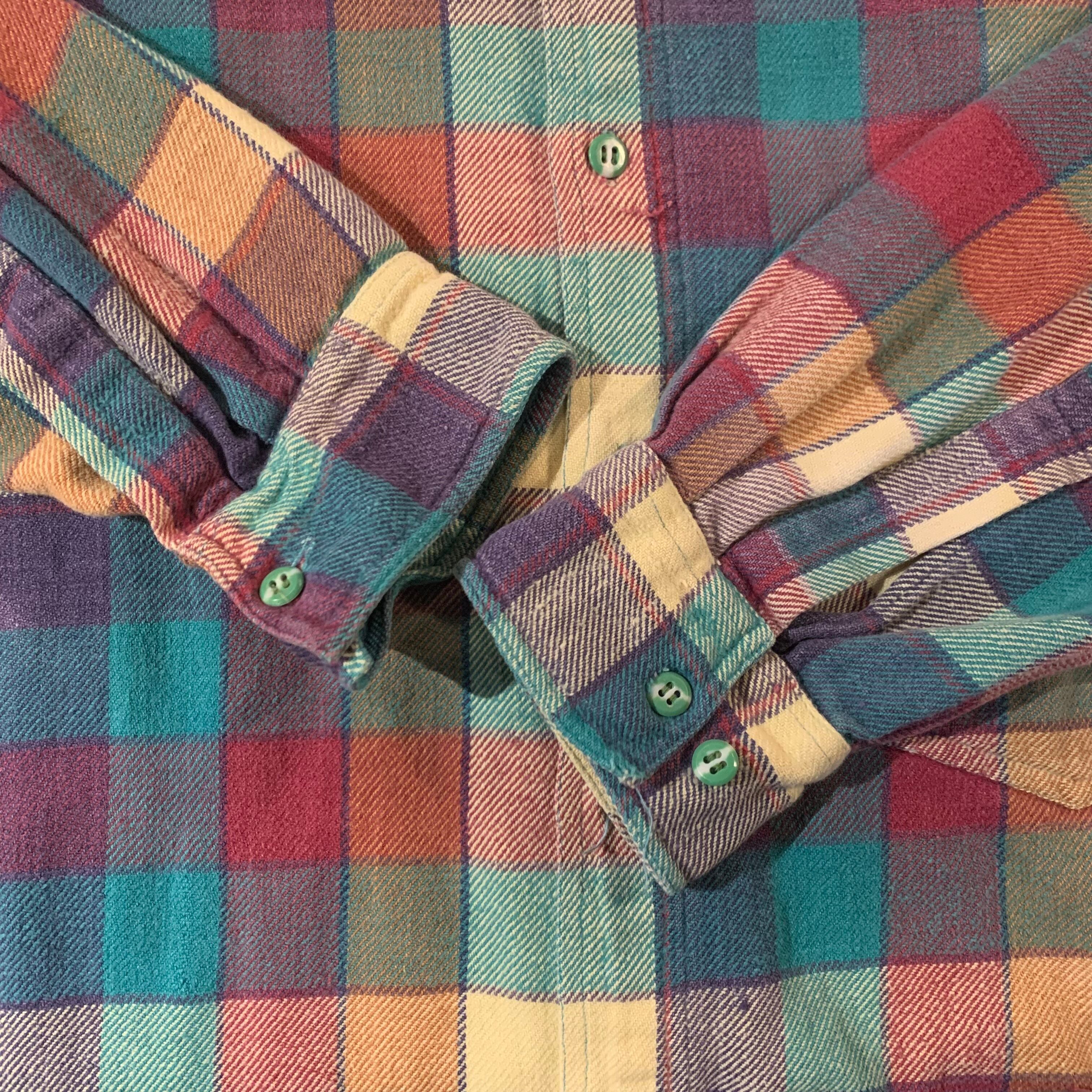 春らしいパステルカラーのチェックシャツで、グランジっぽいいなたさがあります!