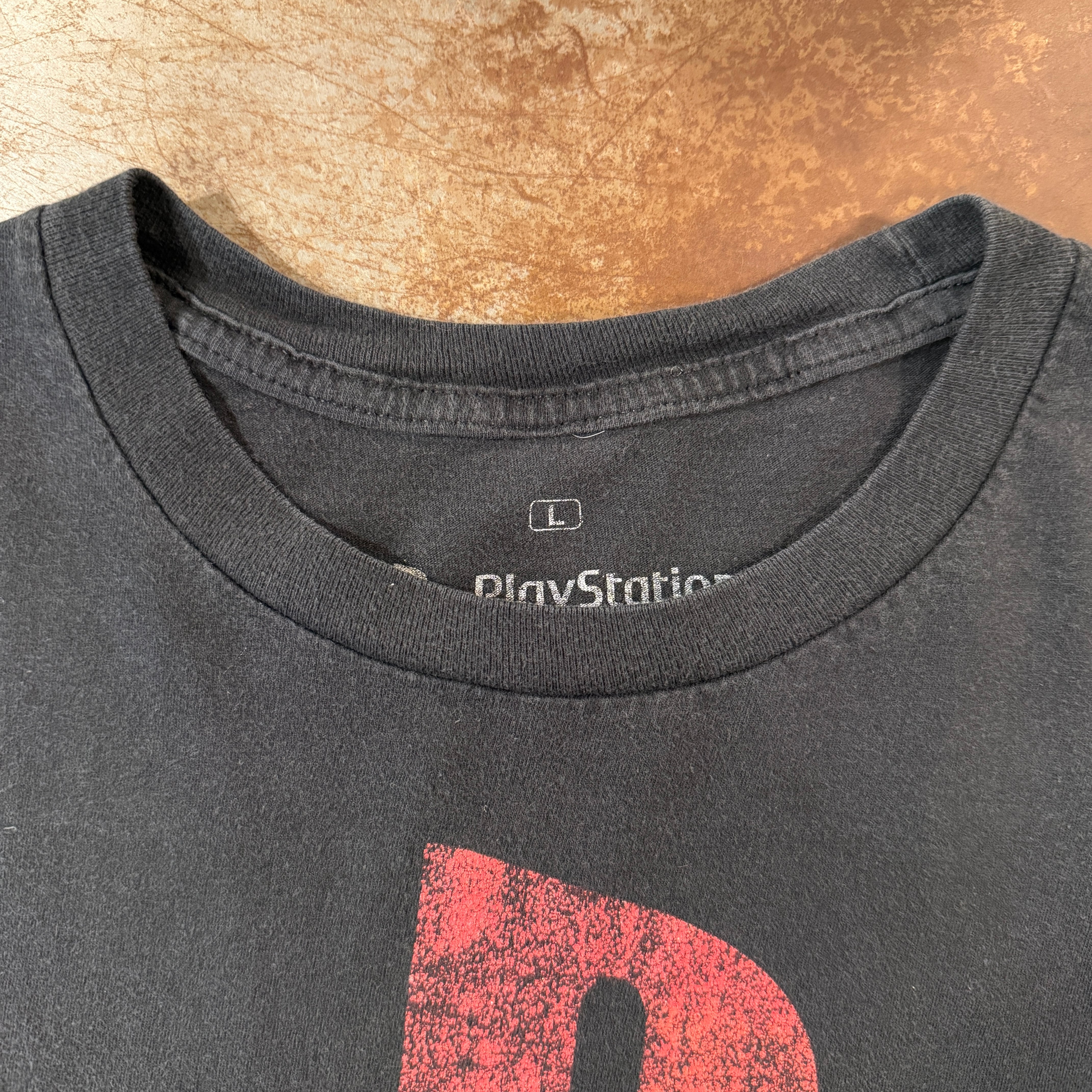 大人気ゲームメイカーPlay Station.のオフィシャルTシャツになります。ボディーのフェード感とプリント割れがマッチして雰囲気抜群です。こちらのTシャツの裾が簡易的にリメイクされており短くなっていますが、簡単にステッチを切り、解く事が可能なので問題はありません。